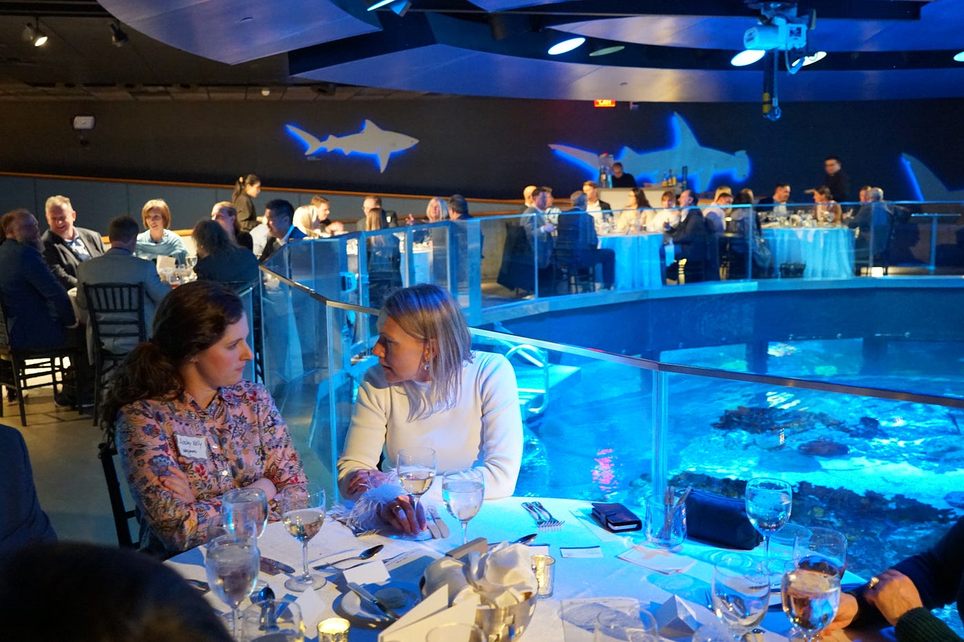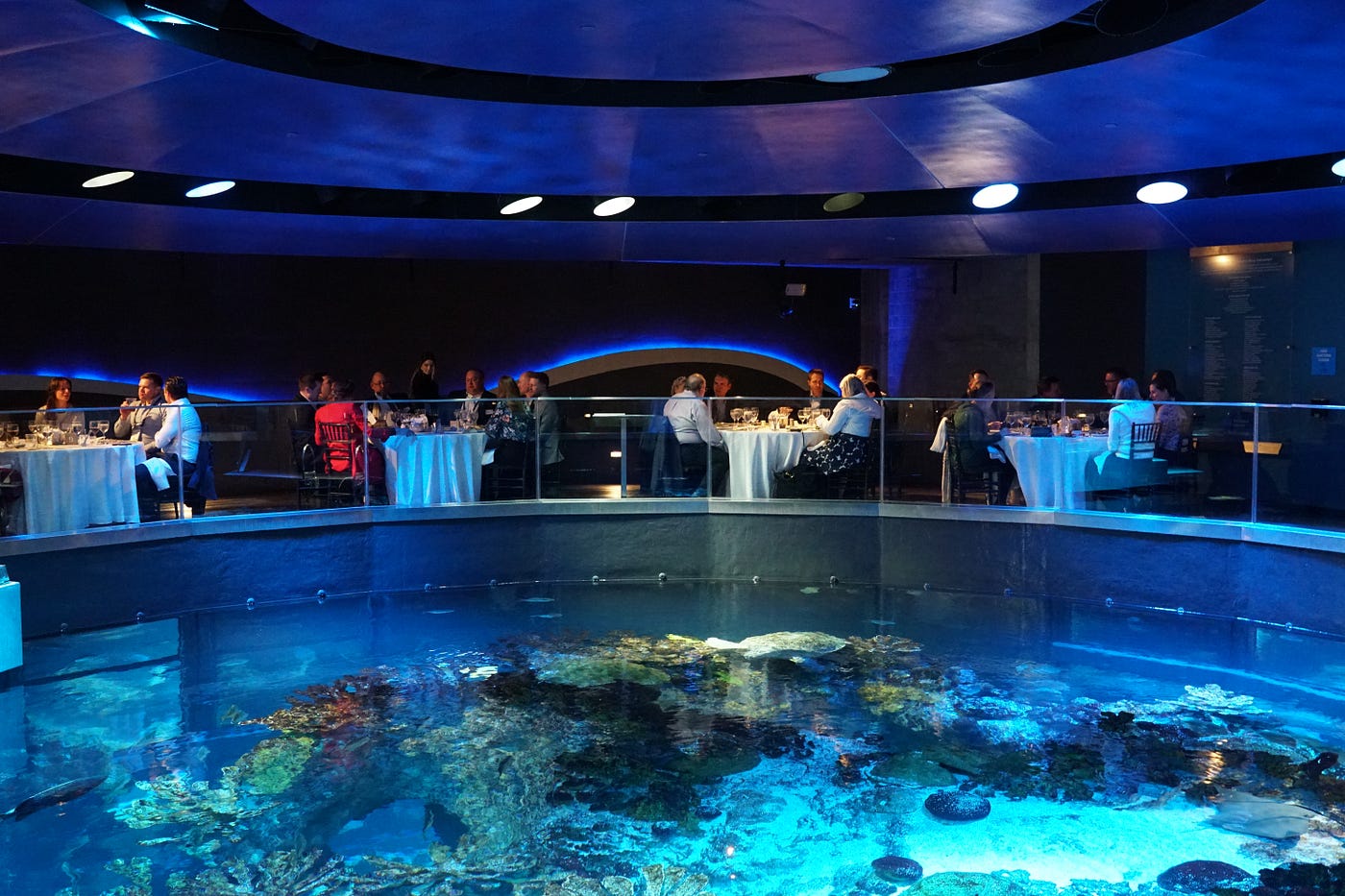 Event Dinner at New England Aquarium with Giant Ocean Water Tank as Scenic Backdrop