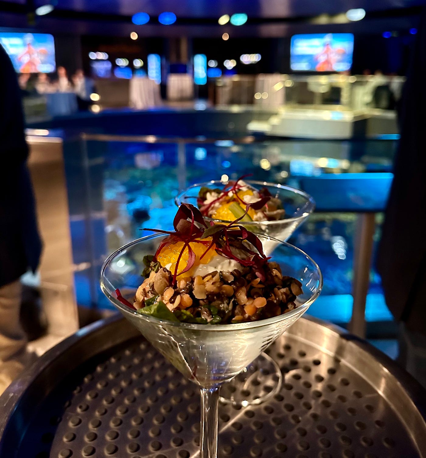 On Sunday, March 10th, Wholechain, Food Tank, Envisible, BioMar, Tilghman Island Seafood, and the Virginia Seafood Products Board hosted a distinguished gathering of seafood industry executives, retailers, and NGOs atop the iconic Giant Ocean Water Tank at the New England Aquarium. The exclusive dinner emphasized traceability and sustainability across seafood supply chains, from source to plate. Each ingredient served had a transparent story, accessible via Wholechain's QR codes provided on menus.